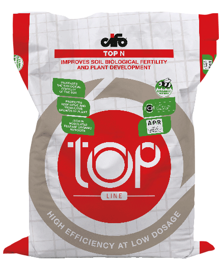 TOP N is a new concept organic microgranular fertilizer, particularly rich in controlled release organic nitrogen which ensures a balanced and modulated nutrition in line with the needs of the crop.