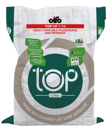TOP NP 7-14 is a pellet organo-mineral fertilizer rich in phosphorus with a biostimulant action.