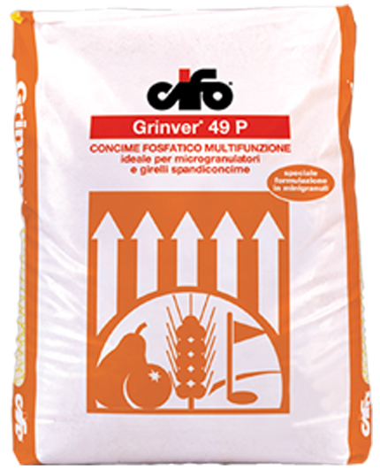 GRINVER 49 P è un concime fosfatico di nuova concezione applicativa e di elevata efficacia che contiene come componente fertilizzante il perfosfato d’ossa.