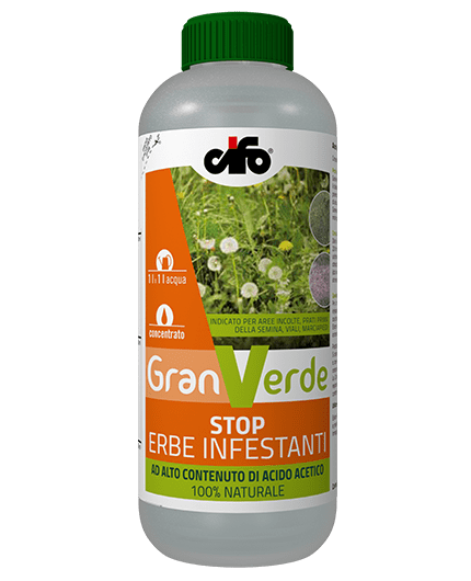 Granverde Aceto è un prodotto naturale a base di aceto in grado di favorire, in modo ecologico, il collasso strutturale dei tessuti delle piante indesiderate (fiori, infestanti, ecc.) presenti su terreno o zone del giardino (viali, marciapiedi, ecc.). L’alta percentuale di acido acetico contenuto favorisce una rapida azione del prodotto. L’utilizzo del formulato assicura un effetto “pulente” delle zone da trattare, in modo ecologico e naturale. Non possiede attività residuale.