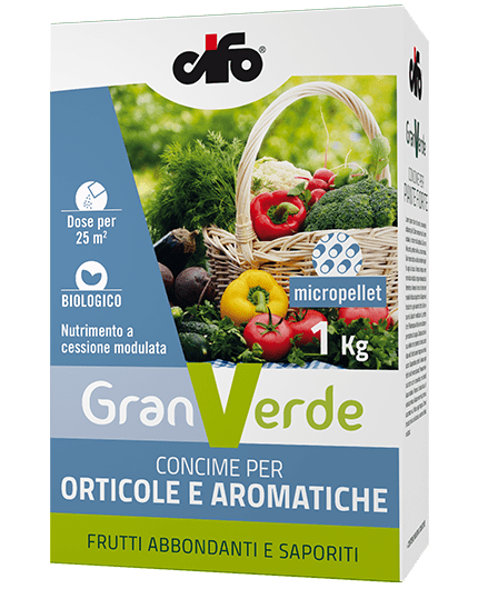 Granverde concime per orticole e aromatiche in granuli pronti all’uso è indicato per nutrire in modo completo gli ortaggi (pomodoro, fragola, lattughe, patate ecc) e le piante da frutto (melo, albicocco, susino, vite, olivo ecc) coltivate in vaso o in piena terra. Contiene i nutrienti in uno specifico rapporto NPK ricco in Azoto e Potassio per favorire lo sviluppo di lattughe croccanti, ottenere frutti dolci e succosi, ortaggi colorati e saporiti.