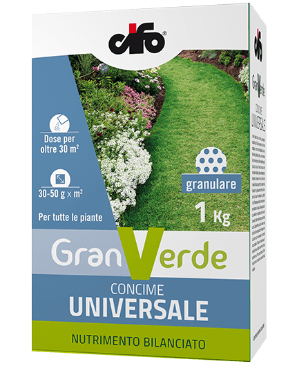 Granverde concime universale in granuli pronti all’uso è indicato per fornire il giusto nutrimento a tutte le piante ornamentali e dell’orto. Gli elementi sono contenuti in un rapporto equilibrato per favorire lo sviluppo della chioma, per aumentare la fioritura e per ottenere la produzione di frutti e ortaggi sani, colorati e saporiti. Creato con materie prime di elevata purezza e qualità, consente di ottenere risultati eccellenti, crescite armoniose e abbondanti fioriture.