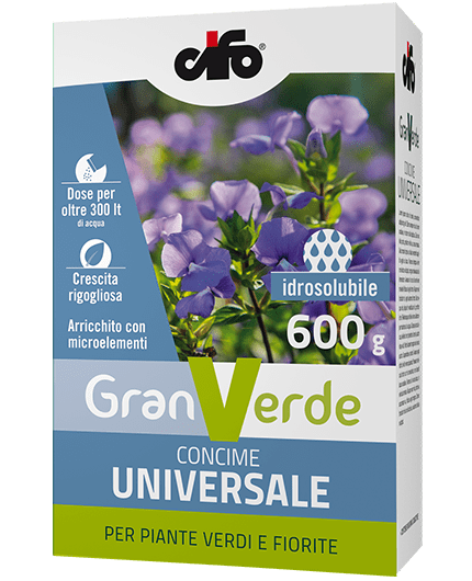 Granverde concime universale in polvere solubile è indicato per fornire il giusto nutrimento a tutte le piante ornamentali e dell’orto. Gli elementi sono contenuti in un rapporto equilibrato per favorire lo sviluppo della chioma, per aumentare la fioritura e per ottenere la produzione di frutti e ortaggi sani, colorati e saporiti. Creato con materie prime di elevata purezza e qualità, consente di ottenere risultati eccellenti, crescite armoniose e abbondanti fioriture.